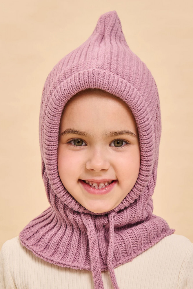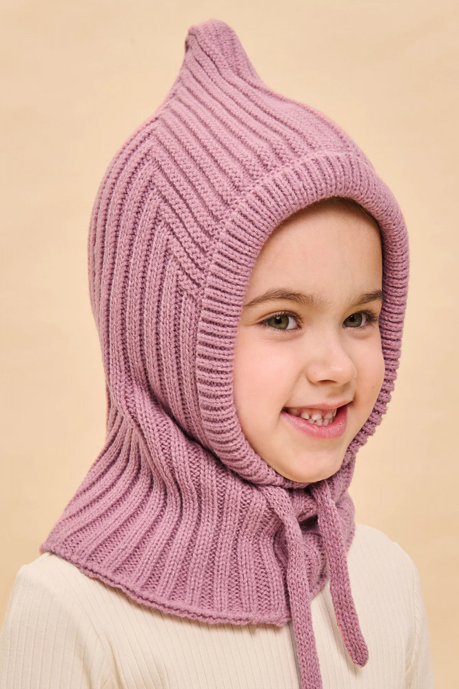 Превосходные терморегулирующие свойства материала помогают сохранять тепло даже при низких температурах. Капор двойной, плотный, красиво и удобно садится по голове ребёнка, хорошо прилегает в области лица за счёт эластичной, регулируемой шнуром окантовки. Шлем актуальной фактурной вязки с оригинальной макушкой — чуть вытянутой вверх уголком — получается форма модного капора-колпака. Стильный и практичный выбор для вашего ребёнка!