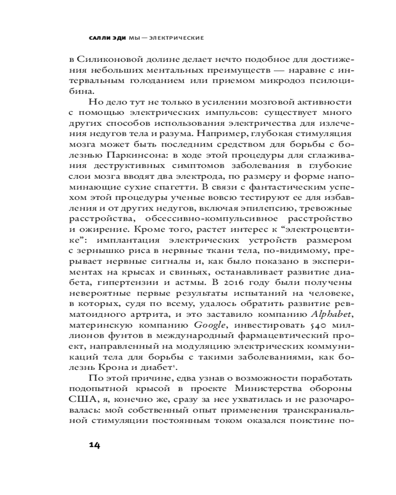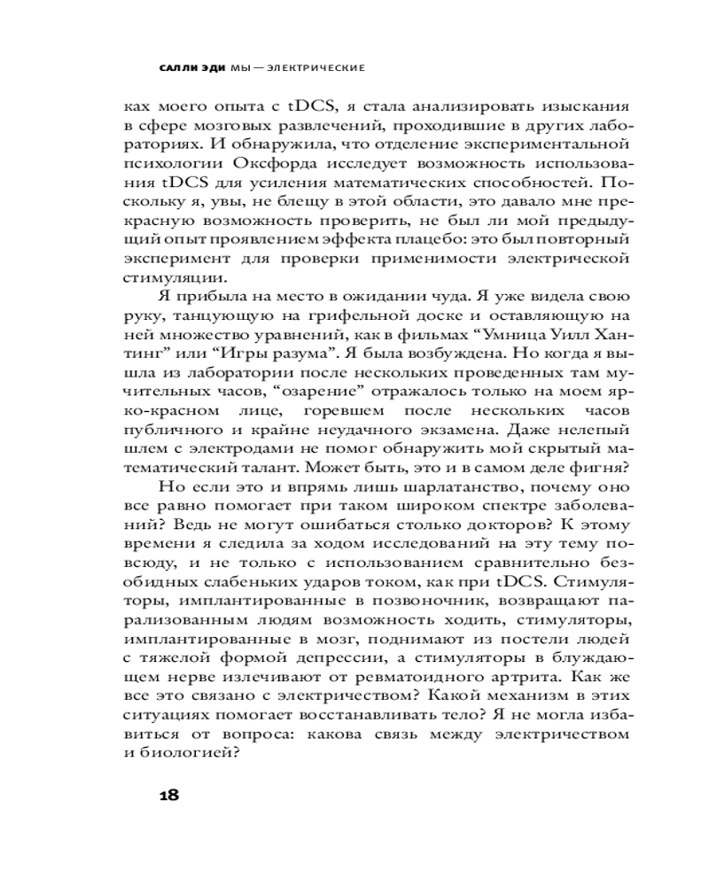 💳 Оплатить за товар можно при получении 🇰🇿 Есть бесплатная доставка по Казахстану от 1 дня 🎁 Копите бонусы с каждой покупки Серия: Элементы 2.0 Научная журналистка Салли Эди рассказывает об истории биоэлектричества: от первых спорных наблюдений гальванизма и спекуляций на лечении электричеством до современных экспериментальных устройств, возвращающих подвижность людям с параличом и усиливающих наши когнитивные способности. Научные споры, стигмы мошенничества, влияние общественных веяний, сенсационализм и трудности с финансированием — все это лишь часть испытаний, которые исследованиям в области биоэлектричества пришлось преодолеть на своем интереснейшем пути становления легитимной областью науки. |