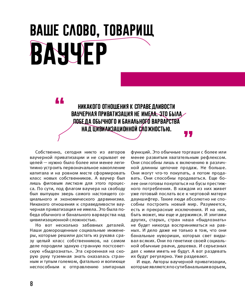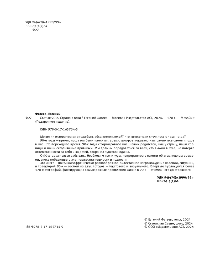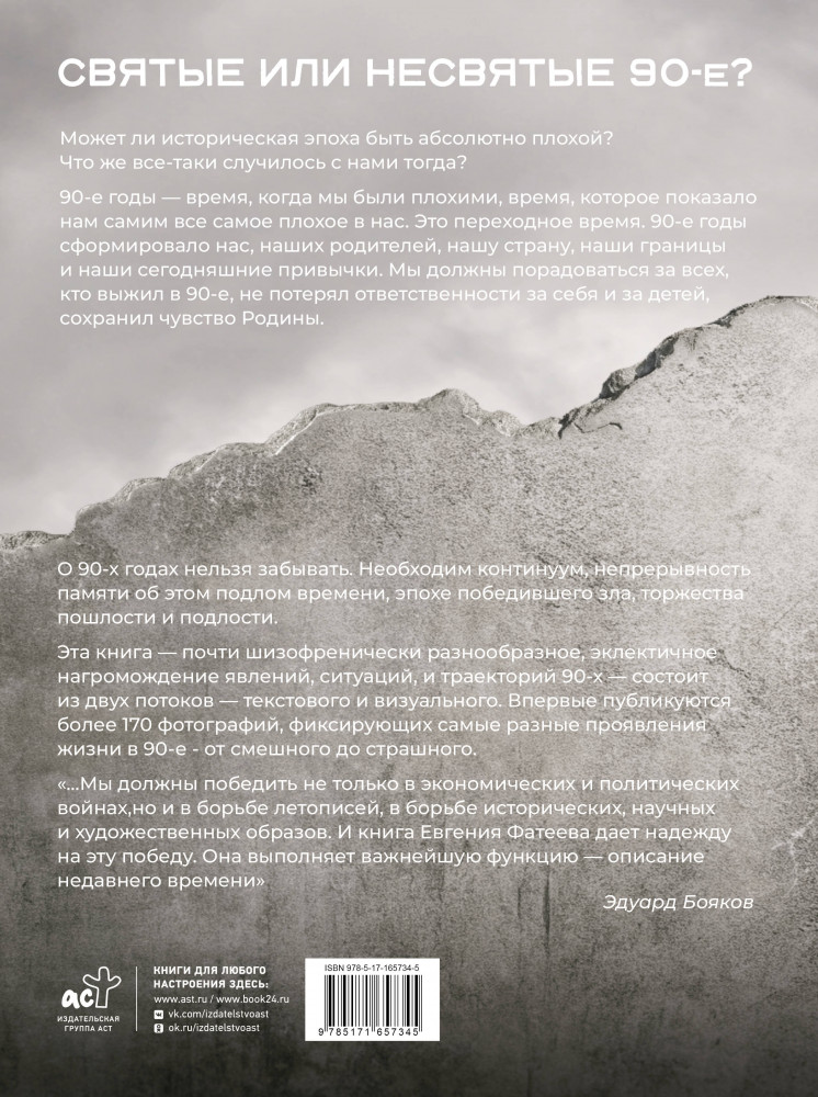 💳 Оплатить за товар можно при получении 🇰🇿 Есть бесплатная доставка по Казахстану от 1 дня 🎁 Копите бонусы с каждой покупки Серия: MassCult (Подарочное издание) Может ли историческая эпоха быть абсолютно плохой? Что же все-таки случилось с нами тогда? 90-е годы — время, когда мы были плохими, время, которое показало нам самим все самое плохое в нас. Это переходное время. 90-е годы сформировало нас, наших родителей, нашу страну, наши границы и наши сегодняшние привычки. Мы должны порадоваться за всех, кто выжил в 90-е, не потерял ответственности за себя и за детей, сохранил чувство Родины. |