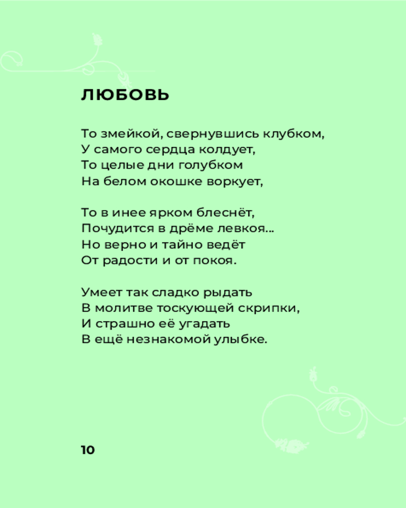 Ахматова. Избранная лирика с иллюстрациямиВ данный момент этот товар отсутствует в продаже. Возможно, у нас найдется аналогичный или похожий товар здесь. Серия: Мировая поэзия. Подарочное издание с иллюстрациями Анна Ахматова — поэт Серебряного века с трагичной, но яркой судьбой. Свидетель смены эпох — она пережила две мировые войны, революцию и блокаду Ленинграда. Своё первое стихотворение Ахматова написала в 11 лет — с тех пор и до конца жизни она не переставала заниматься поэзией. Загадка её творчества кроется в умении угадывать интонацию времени и передавать её настолько точно и пронзительно, что замирает сердце и прерывается дыхание. Издание органично дополняют яркие иллюстрации, подобранные для каждого поэтического шедевра. |