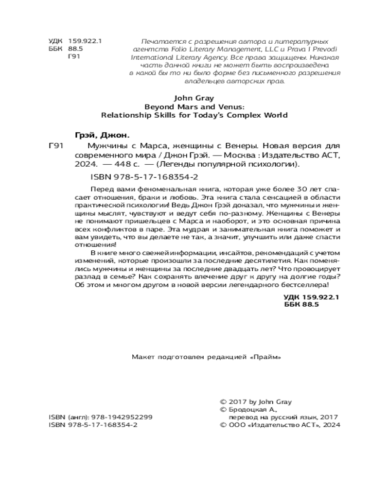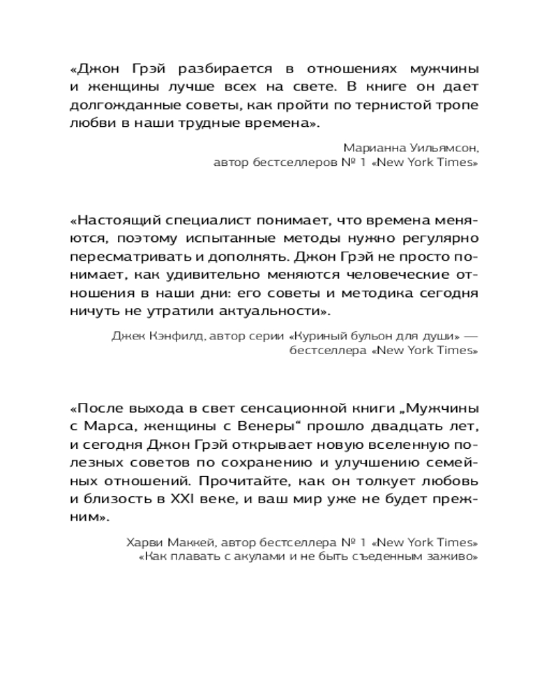 💳 Оплатить за товар можно при получении 🇰🇿 Есть бесплатная доставка по Казахстану от 1 дня 🎁 Копите бонусы с каждой покупки Серия: Легенды популярной психологии Новое издание бестселлера по отношениям в удобном формате и мягком переплете, которое легко носить с собой! Более 30 лет назад психолог Джон Грэй издал книгу, которая перевернула представления об отношениях, — «Мужчины с Марса, женщины с Венеры». Эта книга убедительно доказала, что мужчины и женщины мыслят, чувствуют и действуют по-разному. И это была настоящая сенсация! Изучая книгу, сотни тысяч мужчин и женщин по всему миру учились понимать друг друга, становились счастливыми, спасали отношения. |