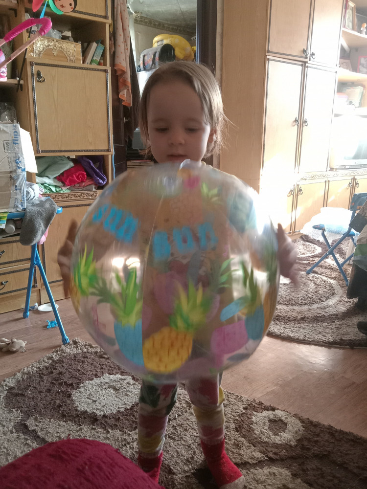 Радости дочери не было предела, мяч ей очень понравился.