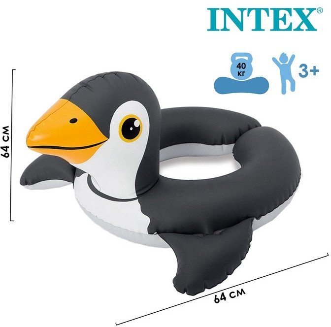 Intex Надувной круг для плавания «Животные»В данный момент этот товар отсутствует в продаже. Возможно, у нас найдется аналогичный или похожий товар здесь. Надувной круг в виде животных изготовлен из прочного винила. Яркая окраска. Для детей от 3 до 6 лет. Размер — 67×55 см. В зависимости от вида круга, его размер может отличаться на ± 5 см. |