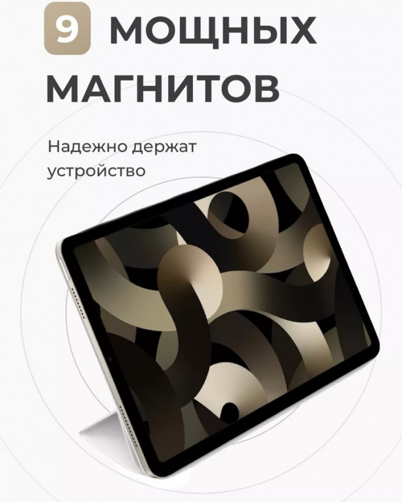 Чехол Apple Smart Folio изготовлен из высококачественных материалов, которые гарантируют долговечность и надежность. Внешняя поверхность устойчива к износу и легко очищается, что позволяет поддерживать чехол в отличном состоянии на протяжении долгого времени. Мягкая внутренняя подкладка из микрофибры бережно защищает экран от царапин и загрязнений.