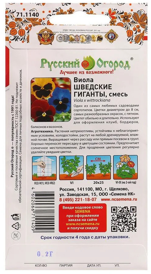 Русский Огород Виола «Шведские Гиганты»+15 красивые обычные семена