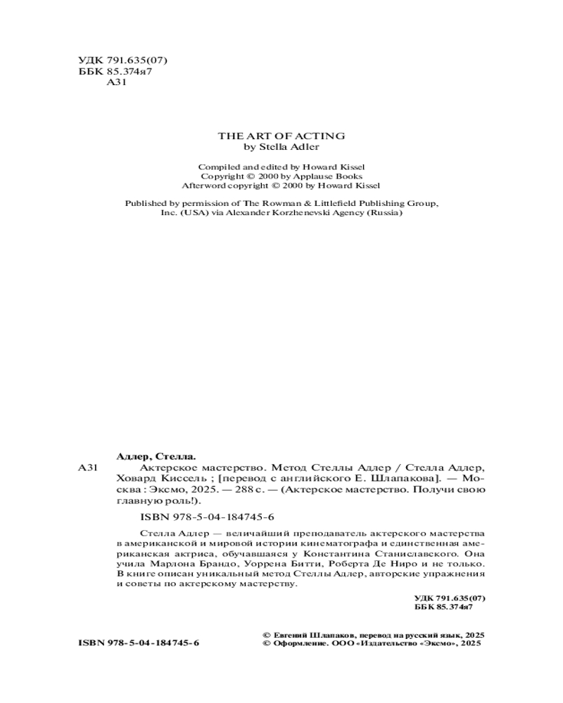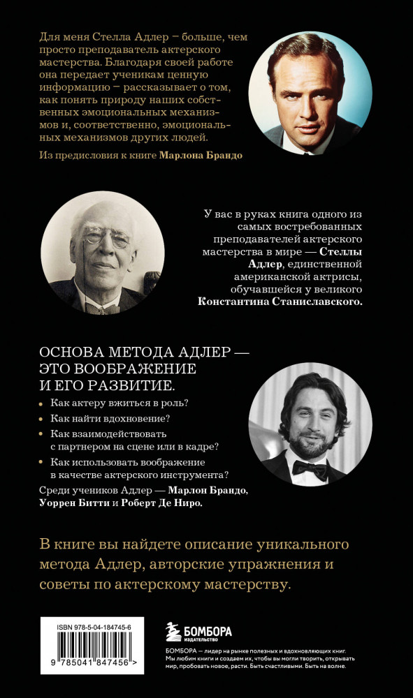 💳 Оплатить за товар можно при получении 🇰🇿 Есть бесплатная доставка по Казахстану от 1 дня 🎁 Копите бонусы с каждой покупки Серия: Актерское мастерство. Получи свою главную роль! «Для меня Стелла Адлер — больше чем просто преподаватель актерского мастерства. Благодаря своей работе она передает ученикам ценную информацию — рассказывает о том, как понять природу наших собственных эмоциональных механизмов и, соответственно, эмоциональных механизмов других людей». — Из предисловия к книге Марлона Брандо |