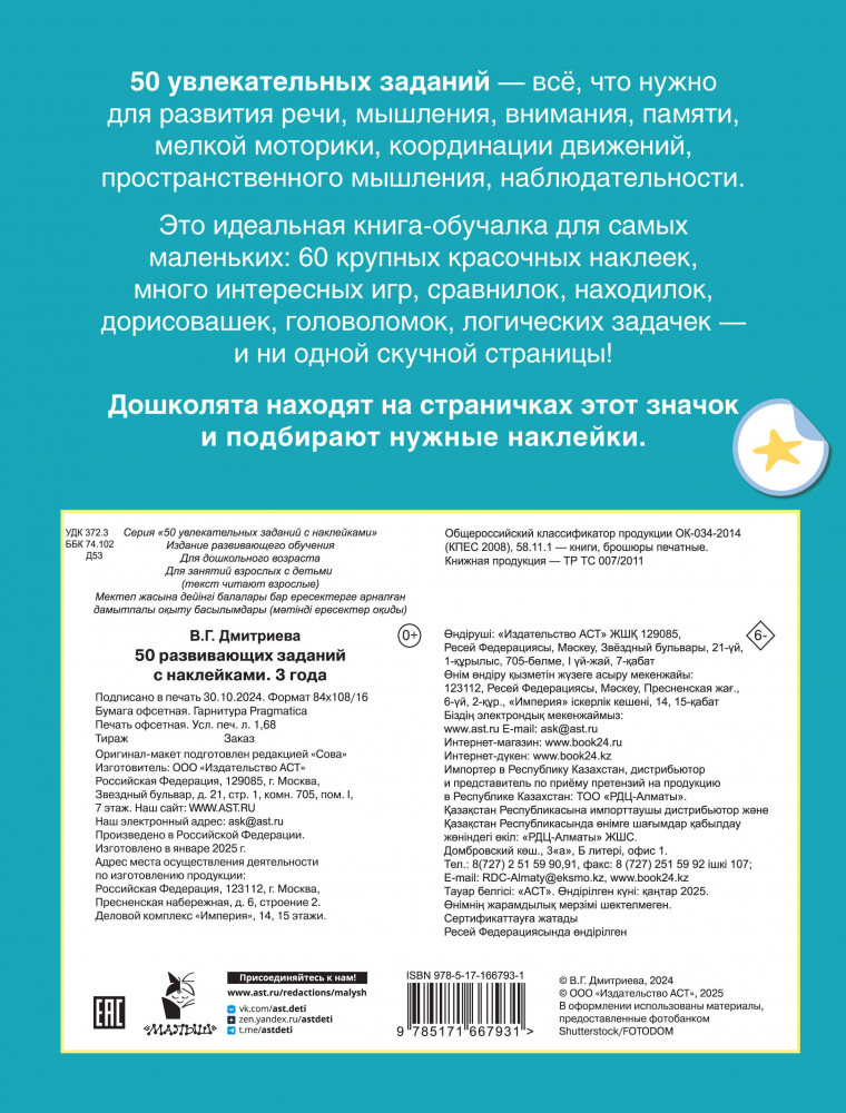 50 развивающих заданий с наклейками. 3 годаВалентина Геннадьевна Дмитриева +16