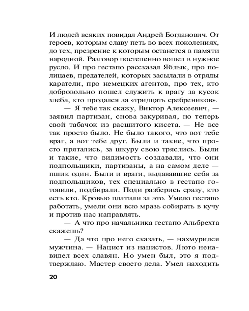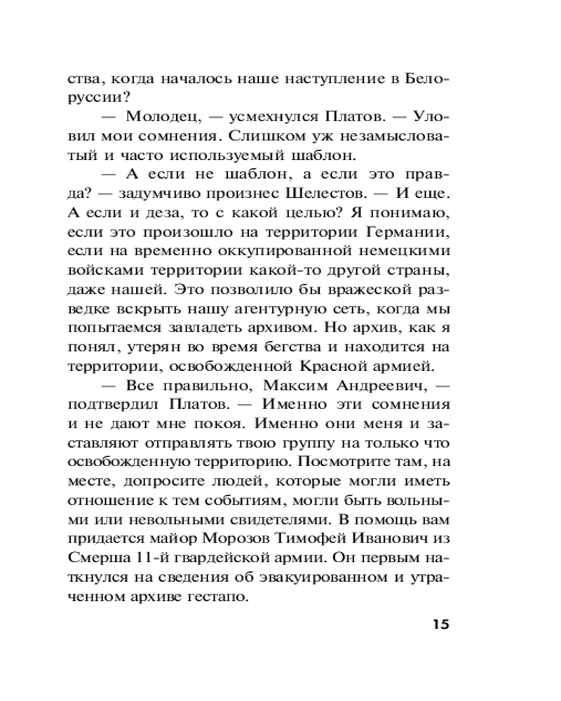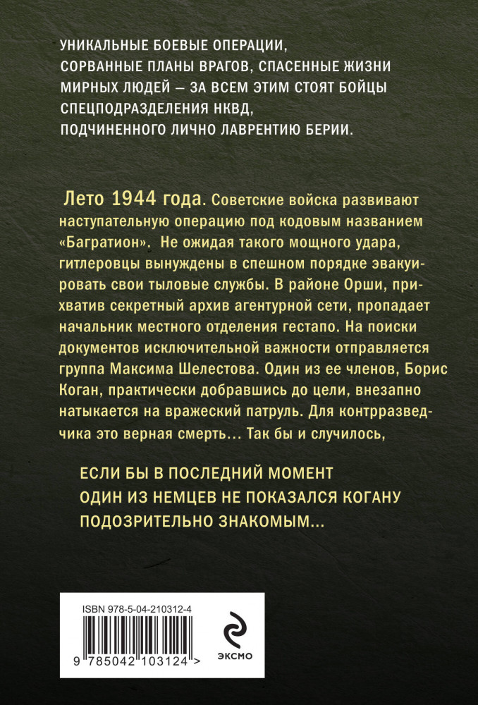Леший в погонахАлександр Александрович Тамоников В данный момент этот товар отсутствует в продаже. Возможно, у нас найдется аналогичный или похожий товар здесь. Серия: Личный отряд Берии. Романы о неизвестных операциях НКВД Лето 1944 года. Советские войска развивают наступательную операцию под кодовым названием «Багратион». Не ожидая такого мощного удара, гитлеровцы вынуждены в спешном порядке эвакуировать свои тыловые службы. В районе Орши, прихватив секретный архив агентурной сети, пропадает начальник местного отделения гестапо. На поиски документов исключительной важности отправляется группа Максима Шелестова. Один из ее членов, Борис Коган, практически добравшись до цели, внезапно натыкается на вражеский патруль. Для контрразведчика это верная смерть... Так бы и случилось, если бы в последний момент один из немцев не показался Когану подозрительно знакомым... |