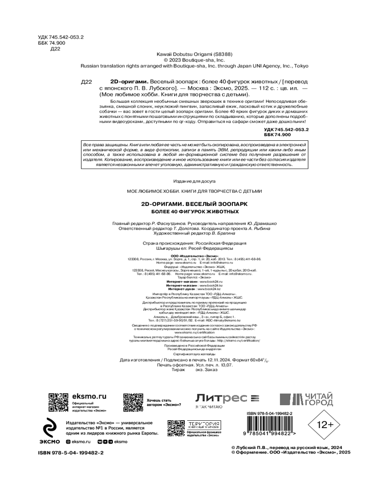 2D-оригами. Веселый зоопарк. Более 40 фигурок животных-30% +49