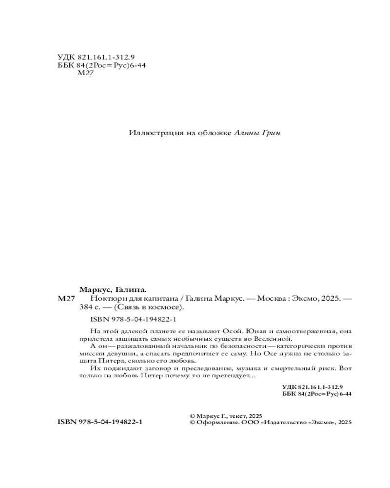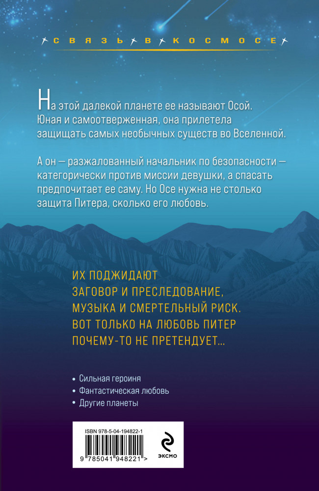 💳 Оплатить за товар можно при получении 🇰🇿 Есть бесплатная доставка по Казахстану от 1 дня 🎁 Копите бонусы с каждой покупки Серия: Связь в космосе На этой далекой планете ее называют Осой. Юная и самоотверженная, она прилетела защищать самых необычных существ во Вселенной. А он — разжалованный начальник по безопасности — категорически против миссии девушки, а спасать предпочитает ее саму. Но Осе нужна не столько защита Питера, сколько его любовь. Их поджидают заговор и преследование, музыка и смертельный риск. Вот только на любовь Питер почему-то не претендует... |