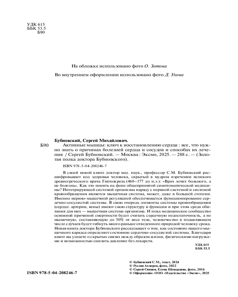 💳 Оплатить за товар можно при получении 🇰🇿 Есть бесплатная доставка по Казахстану от 1 дня 🎁 Копите бонусы с каждой покупки Серия: Золотая полка доктора Бубновского Почему возникает гипертония? Какое влияние на сердце оказывают ноги? Можно ли отказаться от таблеток, снижающих давление, и при этом не умереть? Об этом и многом другом рассказывает доктор Бубновский в своей новой книге. Более 50 упражнений для здоровья сердца и сосудов помогут навсегда забыть об аритмии, повышенном давлении и... лишнем весе. |