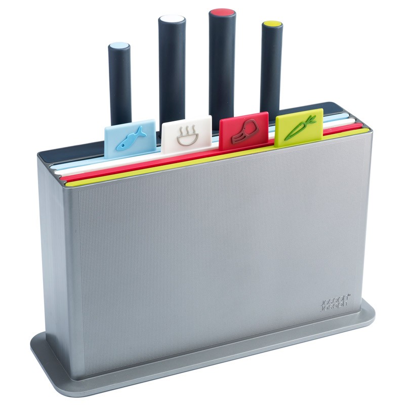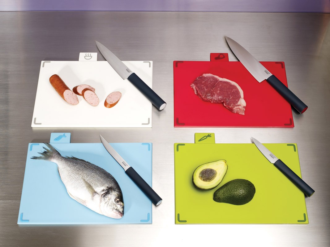 Joseph Joseph Набор разделочных досок с ножами «Index Advance Plus», 34×24 смВ данный момент этот товар отсутствует в продаже. Возможно, у нас найдется аналогичный или похожий товар здесь. Серия: Index Всем известно, что нужно использовать разные доски и ножи для рыбы, мяса и овощей. Но порой, это бывает так сложно - запомнить подо что Вы приспособили ту или иную доску или для чего используете тот или иной нож. С этой проблемой поможет справиться система классификации разделочных досок и ножей, которая получила международное признание. Четыре разноцветные доски, снабженные специальным ярлычком с изображением типа пищи и четыре разноцветных ножа помещены в стильный хромовый контейнер для хранения. Благодаря весьма остроумному дизайну, вода не остается в подставке а свободно стекает вниз, оставаясь в специальном резервуаре. Таким образом, использование этих досок абсолютно безопасно и гигиенично! |