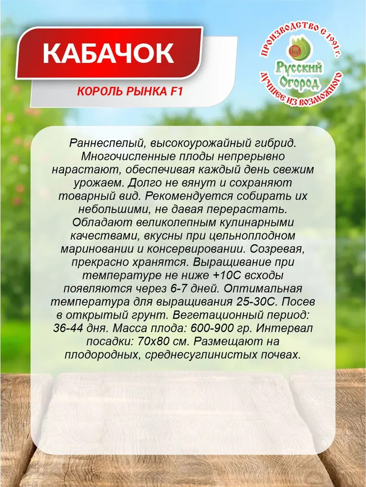 Русский Огород Семена кабачков «Король рынка F1»+14