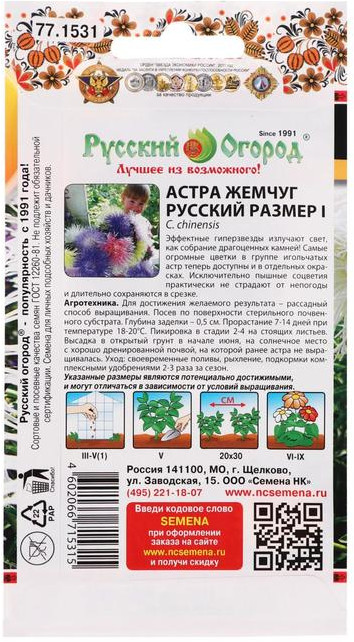 Русский Огород Семена астры «Жемчуг»-25% +9