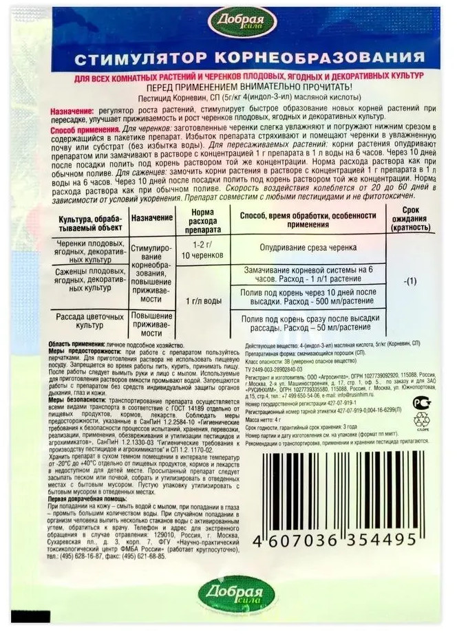 Добрая сила Стимулятор конреобразования «Корневин»В данный момент этот товар отсутствует в продаже. Возможно, у нас найдется аналогичный или похожий товар здесь. Средство для стимулирования корнеобразования всех комнатных растений и черенков плодовых, ягодных и декоративных культур. |