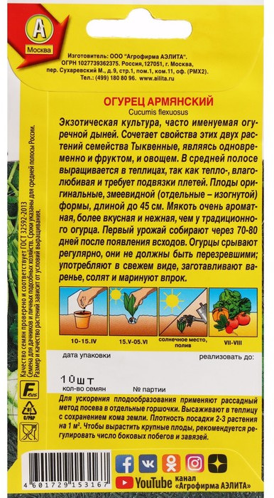 Аэлита Семена огурцов «Армянский»-30% +12