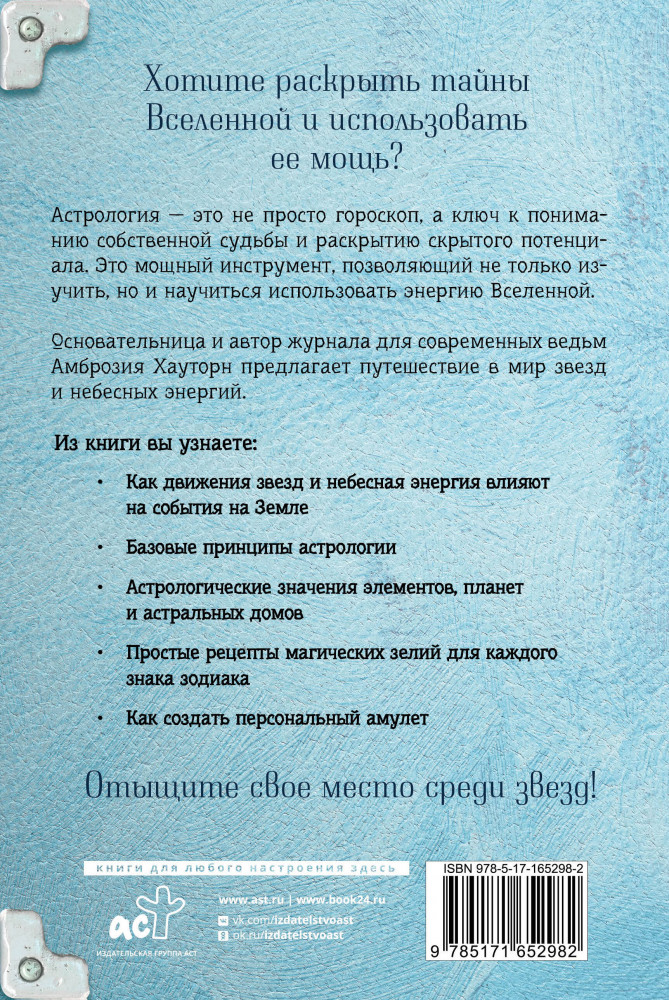 💳 Оплатить за товар можно при получении 🇰🇿 Есть бесплатная доставка по Казахстану от 1 дня 🎁 Копите бонусы с каждой покупки Серия: Простая магия Хотите раскрыть тайны Вселенной и использовать ее мощь? Астрология – это не просто гороскоп, а ключ к пониманию собственной судьбы и раскрытию скрытого потенциала. Это мощный инструмент, позволяющий не только изучить, но и научиться использовать энергию Вселенной. Основательница и автор журнала для современных ведьм Амброзия Хауторн предлагает путешествие в мир звезд и небесных энергий. |