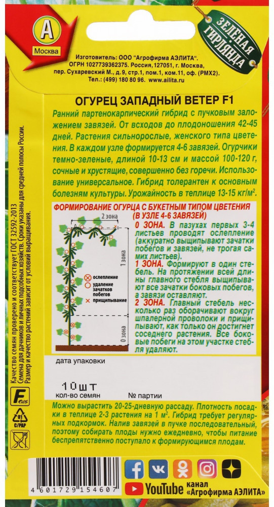 Аэлита Семена огурцов «Западный ветер F1»+18