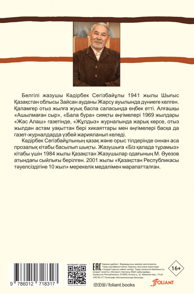 💳 Оплатить за товар можно при получении 🇰🇿 Есть бесплатная доставка по Казахстану от 1 дня 🎁 Копите бонусы с каждой покупки Серия: Алтын Тамыр Қазақстанның еңбек сіңірген қайраткері, Халықаралық «Алаш» сыйлығының иегері, жазушы Кәдірбек Сегізбайұлының өңделіп, толықтырылып жарық көріп отырған «Жол» романы өмірде болған бес жеткіншектің ғажайып сапары туралы сыр шертеді. Оқиға қос арнамен өрбиді. Бірі сол жеткіншектердің ауыр да алыс сапарын, ал екіншісі солардың біреуі Жұмаш Мұратхановтың елге оралғаннан кейінгі, ХХ ғасыр басындағы өмір шындығын қызықты баяндайды. |