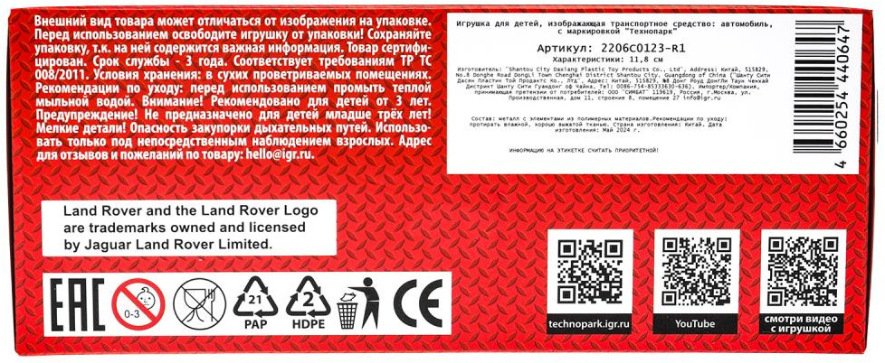 Технопарк Машина инерционная «Land Rover. Defender»-30% +47