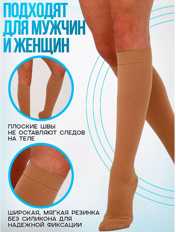 Компрессионные гольфы 2-го класса компрессии бежевые выполнены из комбинированных гипоаллергенных материалов. Такие изделия — это настоящее спасение, особенно в период беременности или после операций. Очень важно отметить точную градуированную схему распределения давления. В области лодыжек происходит 100% воздействия, на верхней трети голени — 70%. Это поможет предотвратить возникновение варикоза и улучшить кровообращение ваших конечностей. Мужские и женские эластичные гольфы безупречно фиксируются благодаря мягкой силиконовой резинке. Они идеально подойдут для тех, кто заботится о здоровье своих ног.