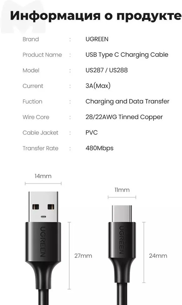 Ugreen Кабель USB 2.0-USB CВ данный момент этот товар отсутствует в продаже. Возможно, у нас найдется аналогичный или похожий товар здесь. Кабель для передачи данных USB-C на USB-A позволяет заряжать устройство USB-C, а также синхронизировать фотографии, музыку и данные с вашим ноутбуком или компьютером. Кроме того, кабель поддерживает выходную мощность до 3 А для зарядки устройств USB-C. USB-C — это новый удобный обратимый разъем, который позволяет подключать кабель к устройству в любом направлении. |