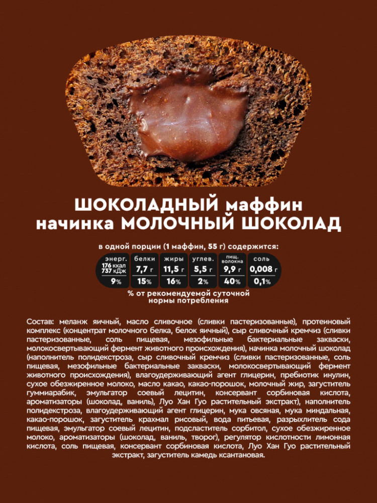 Mr. Djemius ZERO Маффин шоколадный с начинкой молочный шоколад