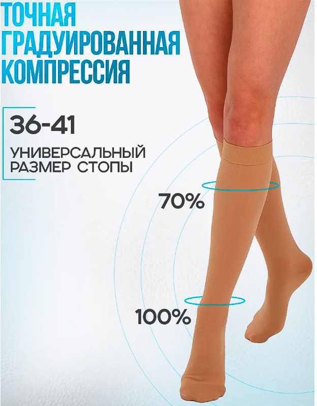 Компрессионные гольфы 2-го класса компрессии бежевые выполнены из комбинированных гипоаллергенных материалов. Такие изделия — это настоящее спасение, особенно в период беременности или после операций. Очень важно отметить точную градуированную схему распределения давления. В области лодыжек происходит 100% воздействия, на верхней трети голени — 70%. Это поможет предотвратить возникновение варикоза и улучшить кровообращение ваших конечностей. Мужские и женские эластичные гольфы безупречно фиксируются благодаря мягкой силиконовой резинке. Они идеально подойдут для тех, кто заботится о здоровье своих ног.