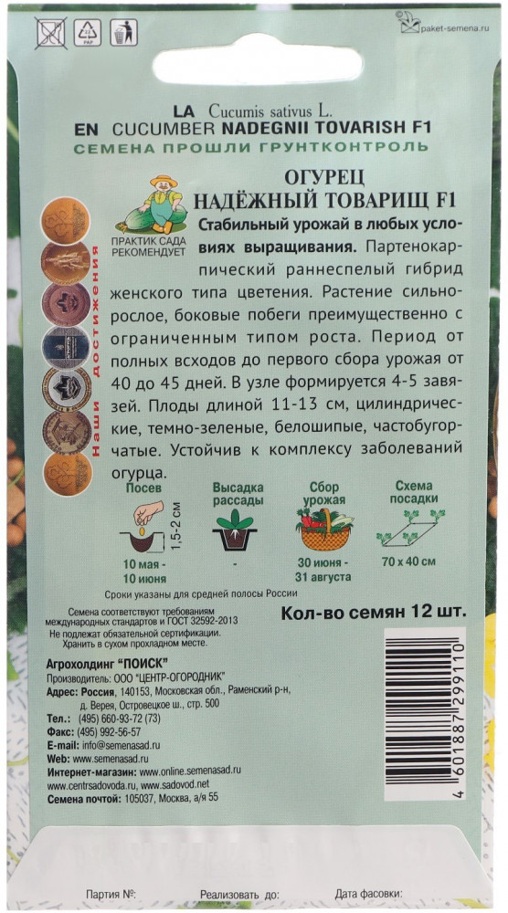 Поиск Семена огурцов «Надежный товарищ F1»В данный момент этот товар отсутствует в продаже. Возможно, у нас найдется аналогичный или похожий товар здесь. Серия: Сибирская серия Огурец Надежный товарищ F1 — партенокарпический раннеспелый гибрид женского типа цветения. Растение сильнорослое, боковые побеги преимущественно с ограниченным типом роста. Период от полных всходов до первого сбора урожая от 40 до 45 дней. В узле формируется 4-5 завязей. Плоды длиной 11-13 см, цилиндрические, темно-зеленые, белошипые, частобугорчатые. Устойчив к комплексу заболеваний огурца. |