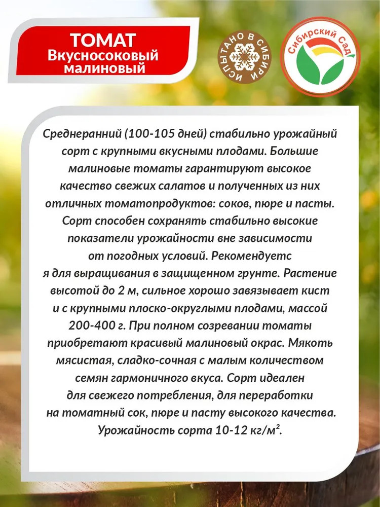 Сибирский Сад Семена томата «Вкусносоковый малиновый»-25% +9