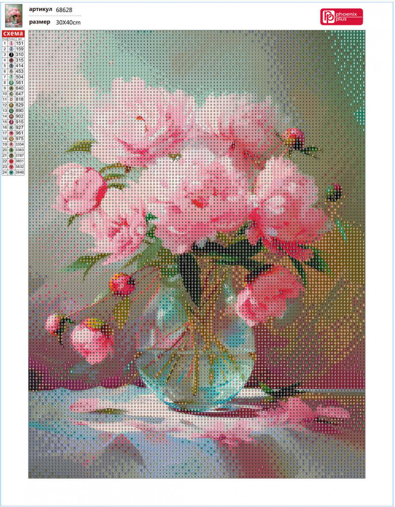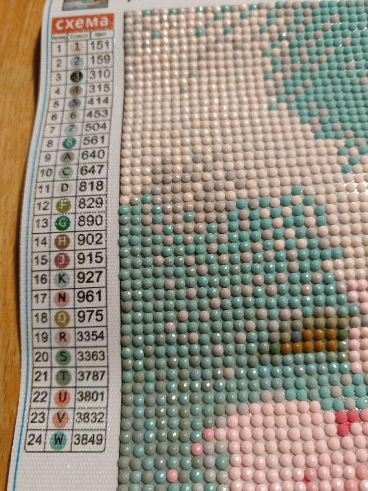 очень много пластиковой крошки в пакетах со стразиками. Сам по себе рисунок - яркий, а цвета страз - блеклые. Сливаются некоторые . Потому что при составлении схемы выбраны не контрастные цвета, а очень похожие , лишь оттенки разные . При плохом зрении сложно отличить на схеме один цвет от другого .