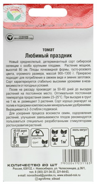 Сибирский Сад Семена томата «Любимый праздник»+12