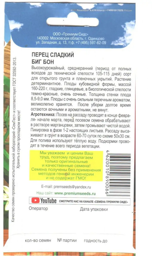 Premium Seeds Семена перца сладкого «Биг Бон»+15