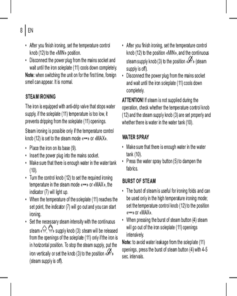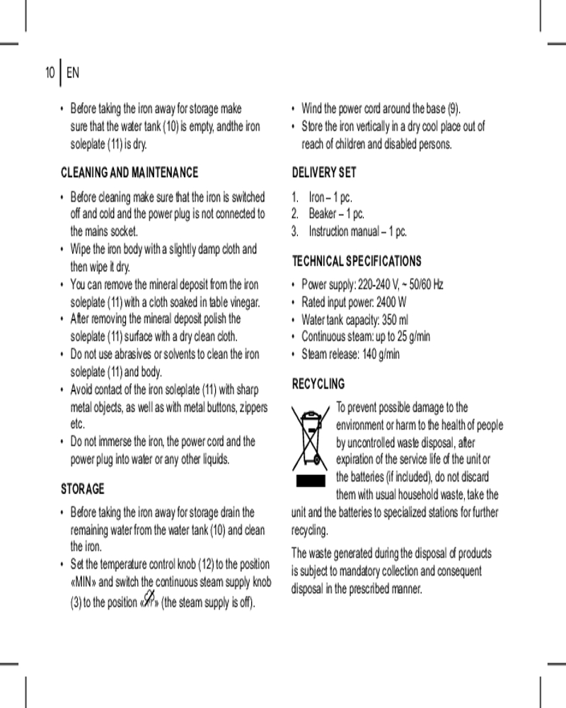 💳 Оплатить за товар можно при получении 🇰🇿 Есть бесплатная доставка по Казахстану от 1 дня 🎁 Копите бонусы с каждой покупки Паровой утюг Brayer 4018BR мощностью 2400 Вт обеспечивает эффективное и быстрое разглаживание даже самых стойких складок. Керамическая подошва гарантирует плавное скольжение по ткани, что делает процесс глажки более комфортным. Утюг оснащен функцией парового удара, который подает пар с интенсивностью 140 г/мин, что позволяет справляться с плотными тканями и сложными участками одежды. Объем резервуара для воды составляет 350 мл, что обеспечивает продолжительную работу без частых дозаправок. Функция вертикального отпаривания позволяет гладить вещи прямо на вешалке, что особенно удобно для деликатных тканей. Автоматическое отключение обеспечивает безопасность использования, а защита от накипи продлевает срок службы устройства. |