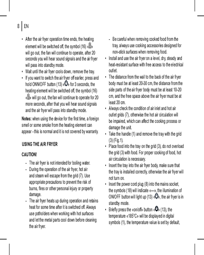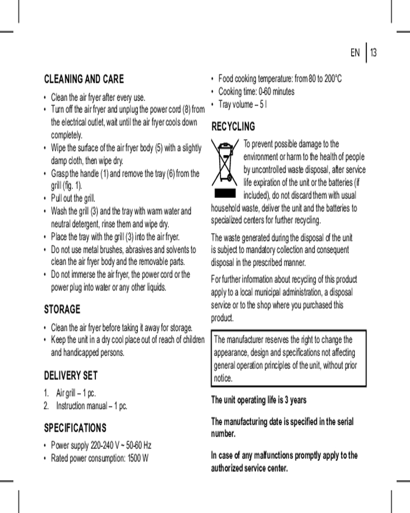 Аэрогриль Brayer 2036BR — это современное устройство для приготовления пищи, которое сочетает в себе функциональность и удобство использования. С мощностью 1500 Вт и объемом чаши 5 литров, он позволяет готовить разнообразные блюда быстро и эффективно. Диапазон рабочих температур от 80 до 200 С обеспечивает возможность приготовления различных продуктов, от нежных овощей до сочных стейков. Сенсорное управление и наличие LCD-дисплея делают процесс настройки простым и интуитивно понятным. Семь программ приготовления позволяют выбрать оптимальный режим для каждого блюда. Съемная решетка облегчает уход за устройством, а таймер помогает контролировать время приготовления. Корпус из металла и пластика обеспечивает надежность и долговечность аэрогриля. Компактные размеры позволяют удобно разместить его на кухне, а вес в 4,2 кг делает его достаточно мобильным. |