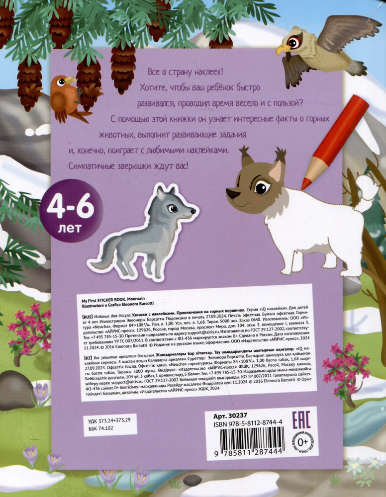 💳 Оплатить за товар можно при получении 🇰🇿 Есть бесплатная доставка по Казахстану от 1 дня 🎁 Копите бонусы с каждой покупки Серия: Книжки с наклейками С помощью этой книжки ребёнок узнает много интересного о животных гор и предгорий. Выполняя игровые задания, он будет искать отличия в рисунках, проходить по запутанным лабиринтам, дорисовывать и раскрашивать картинки. Книга содержит 50 наклеек. На специальном развороте их можно расположить где угодно и создать свою неповторимую картину. Книжку удобно брать в дорогу или на отдых. Адресовано детям 4-6 лет. |