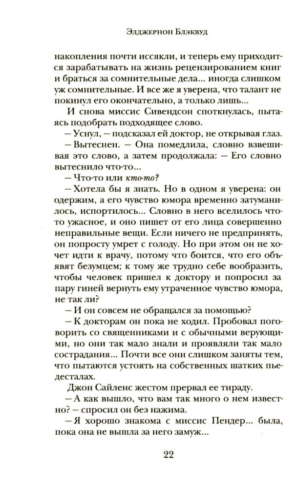 | Элджернон Генри Блэквуд родился в городке Шутерз-Хилл (графство Кент). В ранней юности отправился на поиски приключений в Америку - был фермером в Канаде, управлял отелем, добывал золото на Аляске, работал репортером в нью-йоркской газете. В 1899 году вернулся в Англию. Семь летспустя он опубликовал свой первый сборник повестей и рассказов "Пустой дом". За этим сборником последовало множество других, среди которых "Молчун Джон" (1908) и "Истории о необычном и сверхъестественном" (1949). В... |