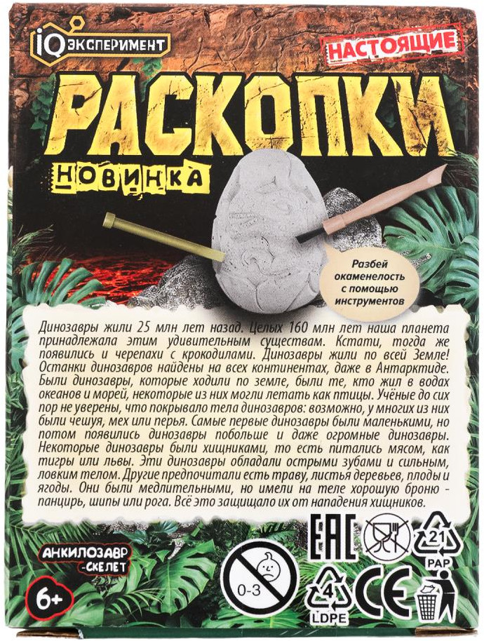 IQ Эксперимент Набор игровой «Настоящие раскопки. Анкилозавр-скелет в яйце»-30% +26