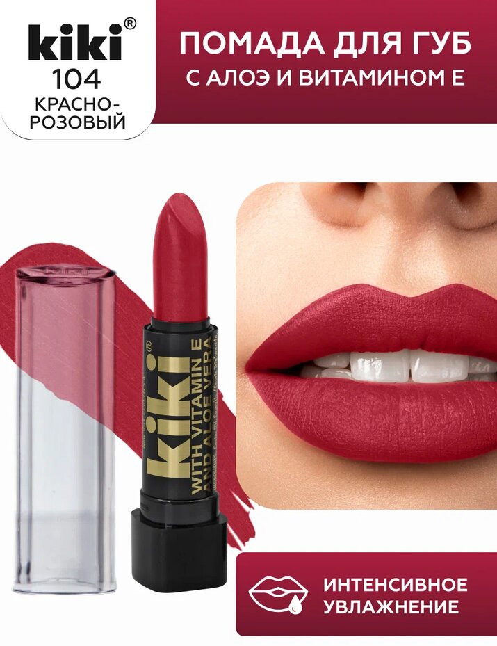 Kiki Помада для губ «Aloe & Vitamin E», тон 104 Красно-розовый