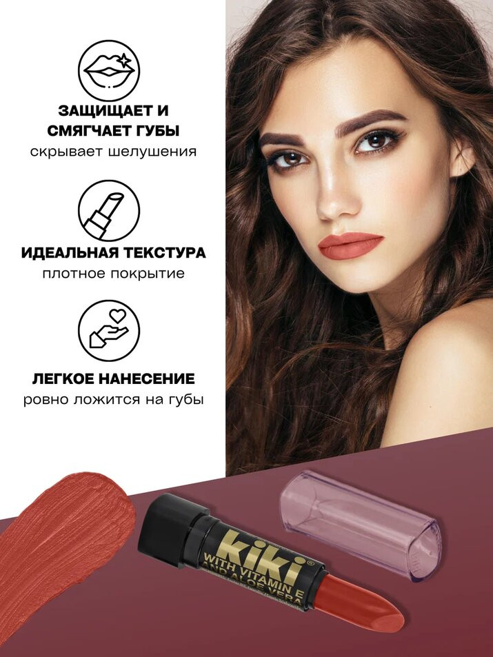 Kiki Помада для губ «Aloe & Vitamin E», тон 107 Медно-коричневый
