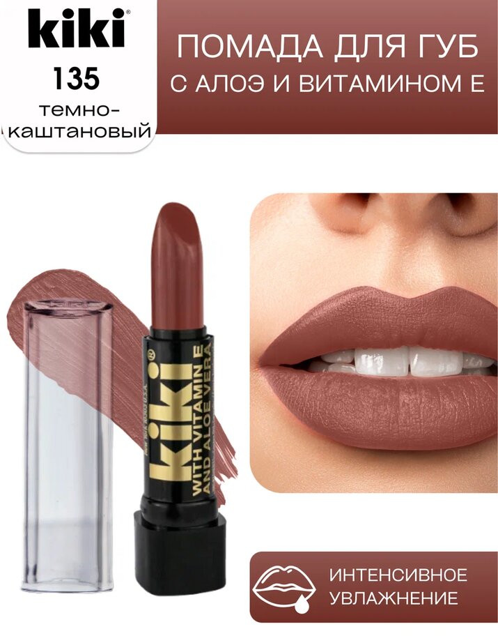 Kiki Помада для губ «Aloe & Vitamin E», тон 135 Темно-каштановый
