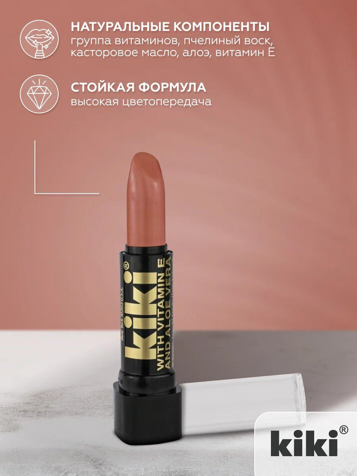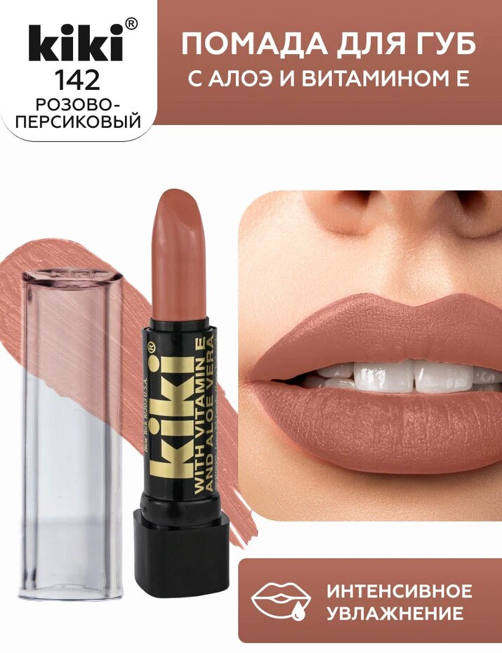 Kiki Помада для губ «Aloe & Vitamin E», тон 142 Розово-персиковый