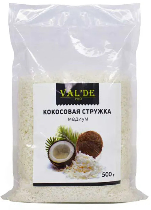 Кокосовая стружка жирностью 65% среднего измельчения, страна происхождения Индонезия в упаковке весом 0,5 кг. Стружка идеально подходит для приготовления различных блюд и кондитерских изделий.