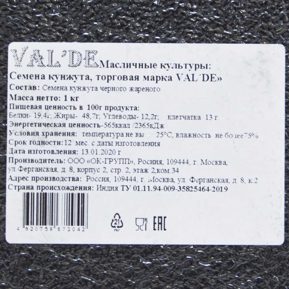 Val'de Кунжут черный обжаренный-25% +186