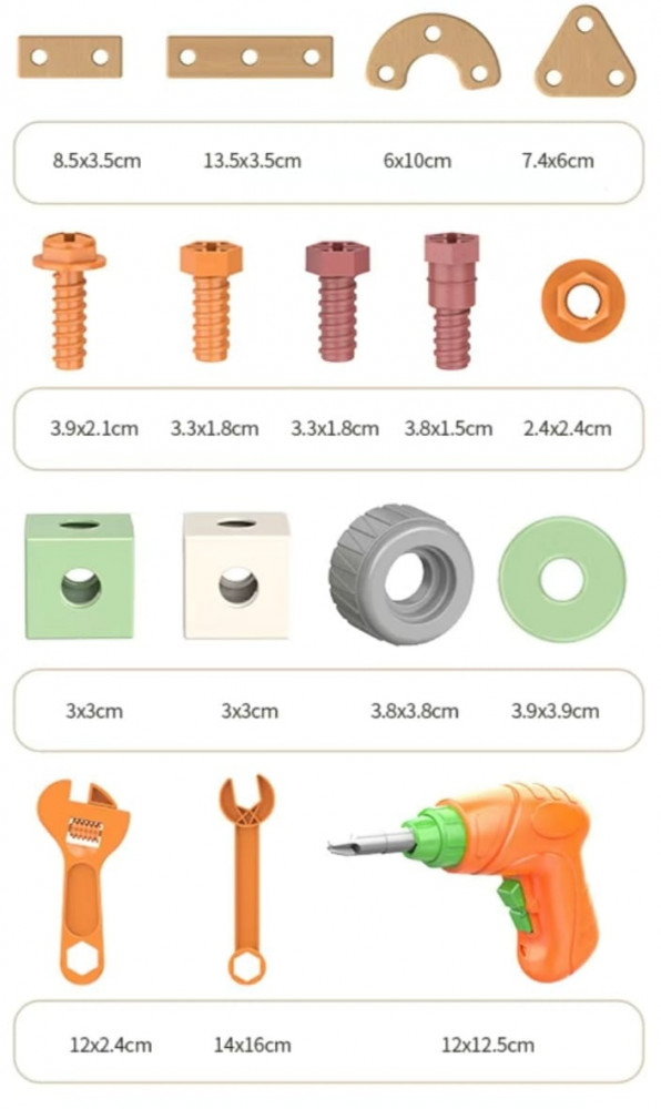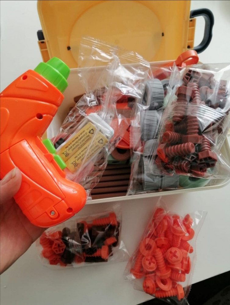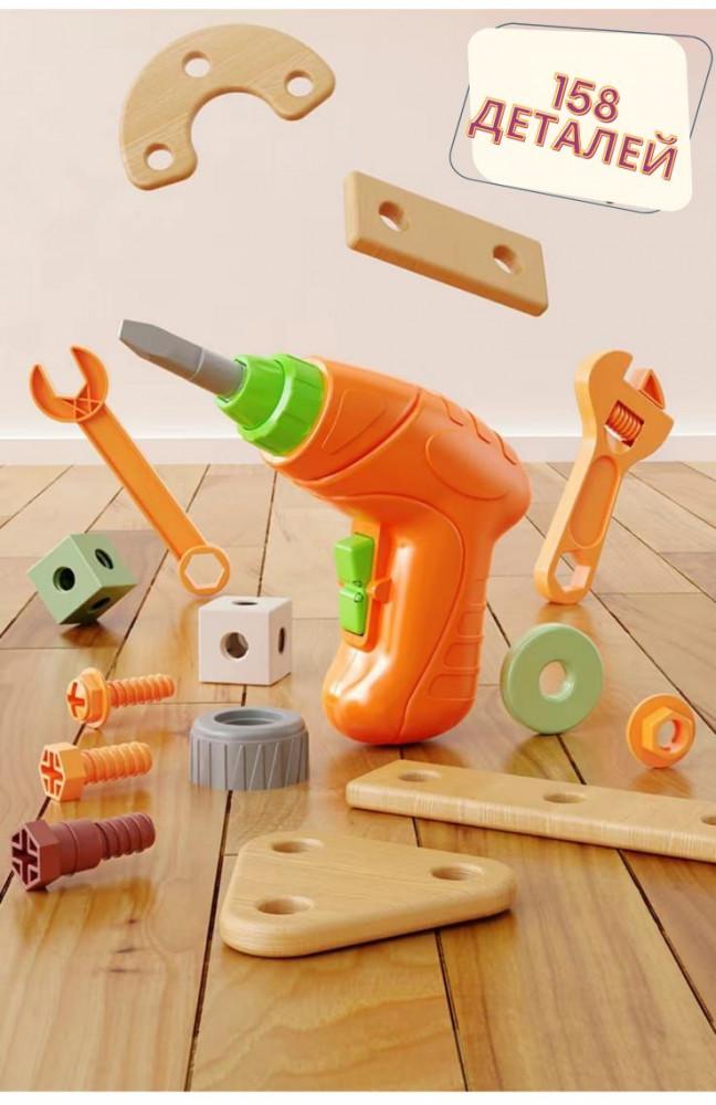 💳 Оплатить за товар можно при получении 🇰🇿 Есть бесплатная доставка по Казахстану от 1 дня 🎁 Копите бонусы с каждой покупки Игровой строительный набор — конструктор для детей состоит из 158 пластиковых деталей и в комплекте с шуруповёртом, который заряжается через USB кабель (идёт в комплекте). Развивает креативность, комбинаторику, внимательность и усидчивость, наблюдательность, моторику и ловкость, логику и мышление, тактильные ощущения и пространственное воображение. В комплект входит вместительный бокс для удобного и аккуратного хранения конструктора. В случае загрязнения протереть влажной тряпочкой и вытереть насухо. |