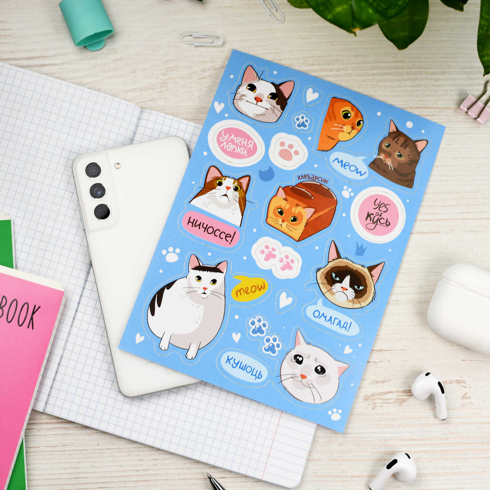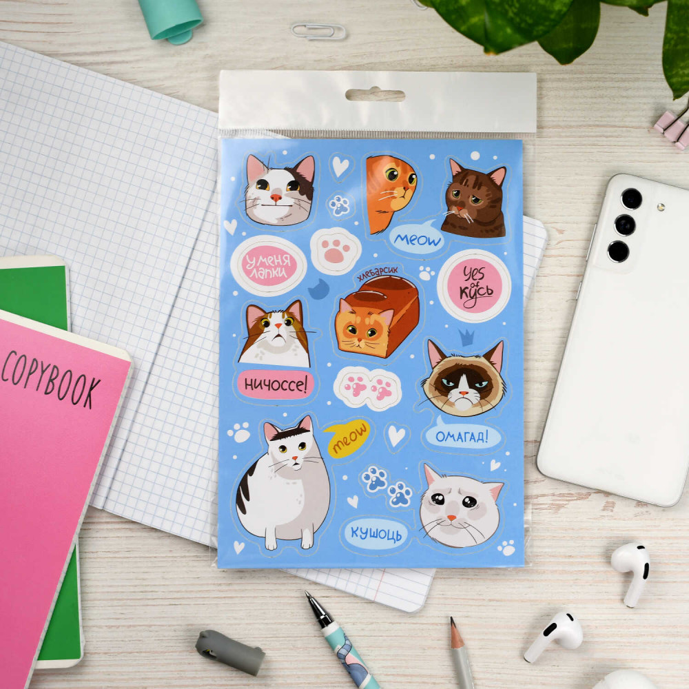 Феникс + Набор наклеек «Котики»-40% +3 яркие красочные прикольные дети довольны