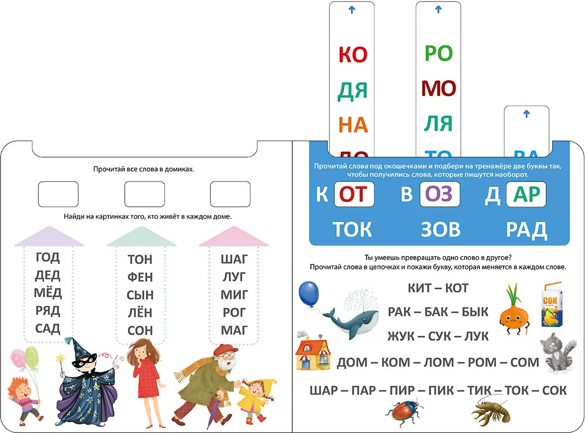 💳 Оплатить за товар можно при получении 🇰🇿 Есть бесплатная доставка по Казахстану от 1 дня 🎁 Копите бонусы с каждой покупки Серия: Обучающий игровой тренажёр Обучающий игровой тренажёр «Я читаю по слогам» — это уникальная система обучения чтению по слогам от простого слова к сложному. На каждом развороте вас ждут красочные картинки и интересные задания: подбери к букве слог, прочитай и найди, составь слова из слогов, прочитай наоборот и т. п. |