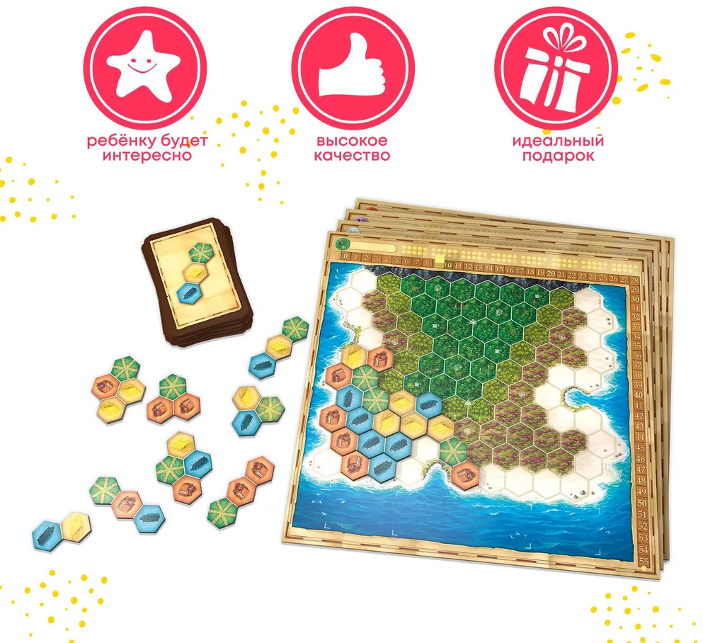 В этой соревновательной игре вам предстоит развивать свой остров: строить дома, вспахивать поля, прокладывать тропы и дороги сквозь дикие джунгли, постепенно раскрывая тайны этих мест. «Мой остров» — это игра с механикой «Наследие», а это значит, что игра будет меняться и развиваться от партии к партии! Вас ждет 24 эпизода увлекательной истории, разделенные на 8 глав, для каждой из которых есть свой секретный конверт, хранящий различные компоненты и правила, меняющие игру, а также различные награды за прохождение каждого эпизода!