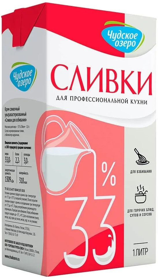 Чудское озеро Сливки для взбивания несгущенные без добавления сахара+229