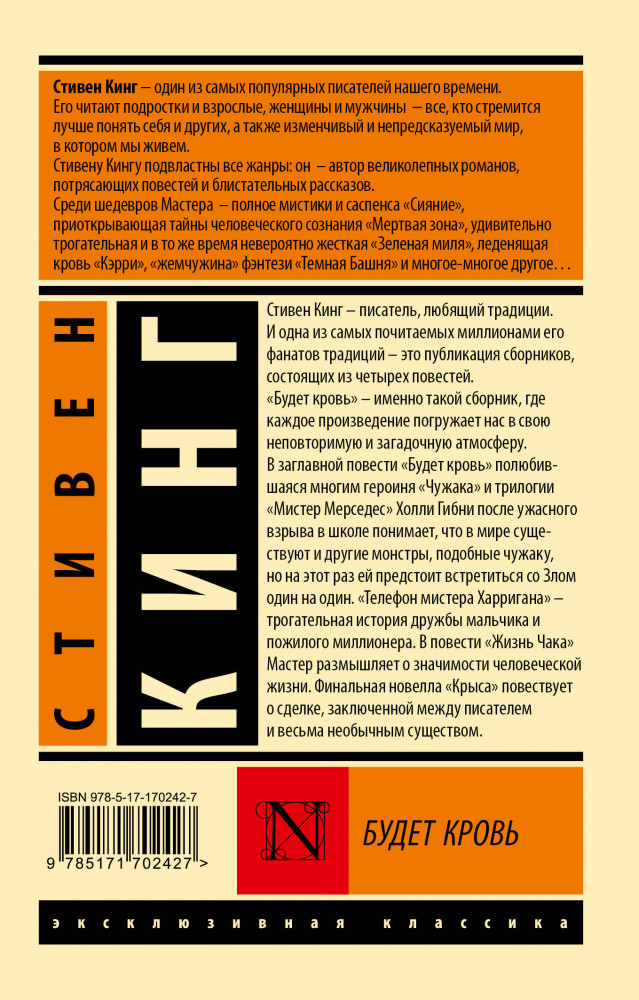 💳 Оплатить за товар можно при получении 🇰🇿 Есть бесплатная доставка по Казахстану 🎁 Копите бонусы с каждой покупки Серия: Эксклюзивная классика Стивен Кинг — писатель, любящий традиции. И одна из самых почитаемых миллионами его фанатов традиций — это публикация сборников, состоящих из четырех повестей. |